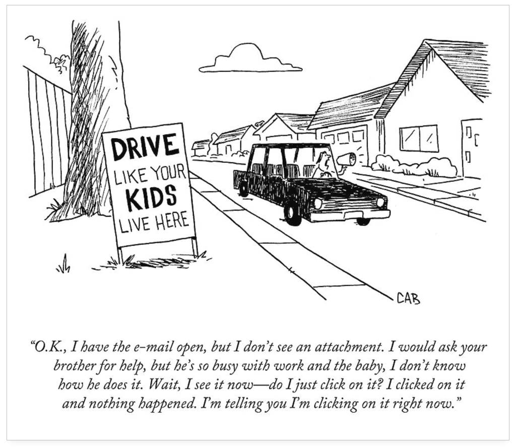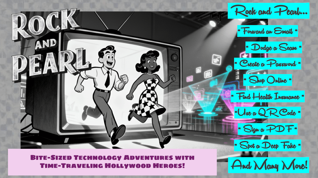 Each tiny episode explains one challenge with modern-day life, such as how to avoid those texting scams, how to re-set the Wi-Fi, buying a ticket for the movies, and why that cute dog riding a bicycle is probably AI.